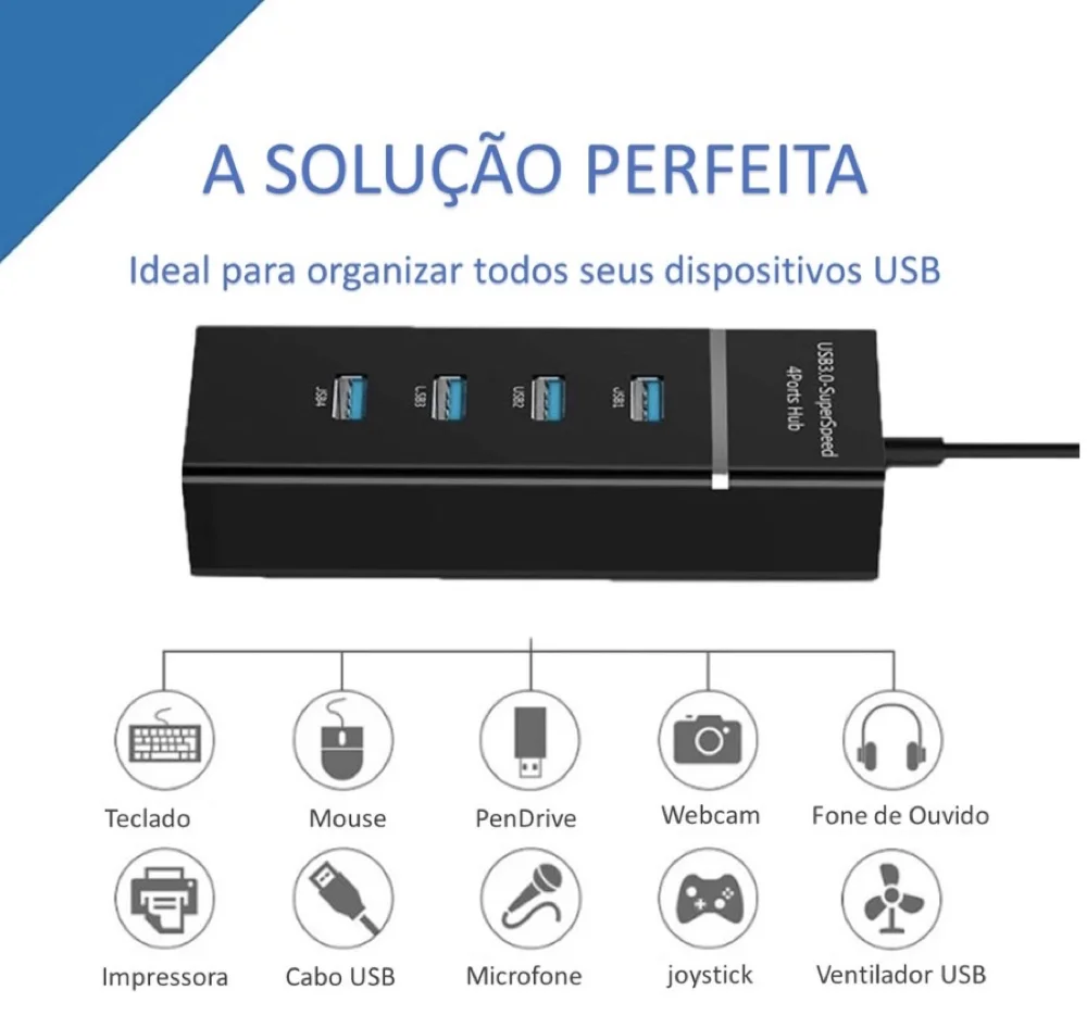 Feito para conectar até 4 dispositivos usb utilizável 1 porta usb do computador.